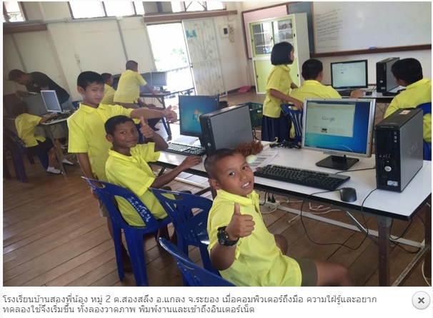 คอมพิวเตอร์เพื่อใช้เป็นสื่อการเรียนการสอน ให้กับเด็กนักเรียน ซึ่งในแต่ละเดือนจะมีโรงเรียนติดต่อมาขอรับคอมพิวเตอร์กับทางโครงการฯ ไม่ต่ำกว่า 20 โรงเรียน