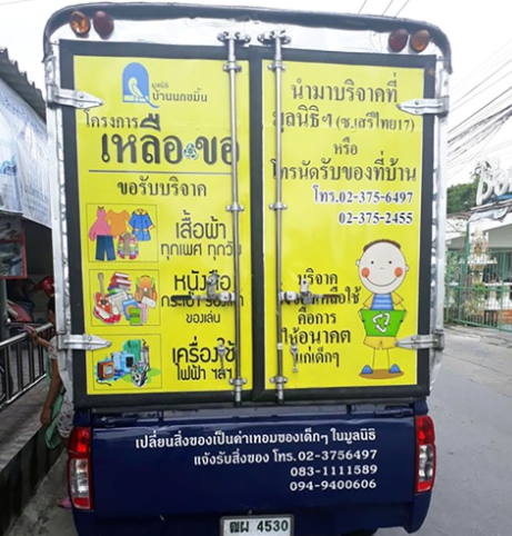 ของใช้มือสอง ของใช้เกินความจำเป็น เพื่อนำสิ่งของเหล่านั้นมาเปลี่ยนเป็น ค่าอาหาร และค่ายารักษาโรคให้กับน้องๆ